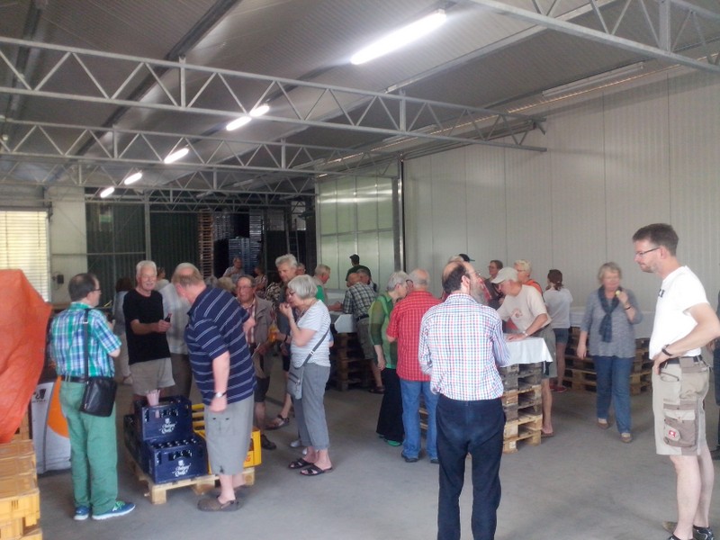 „Das ist unser Oldtimer“ erläuterte Uwe Ehlers lächelnd zu Beginn der Führung am ältesten Treibhaus aus den 1960er Jahren. Anschließend tauchten wir ein in die modernen Treibhäuser mit modernster Technik. Die Erläuterungen unserer fachkundigen Führer waren so spannend und die Wissbegierde der Gäste so groß, dass sogar die tropischen Temperaturen der Treibhäuser kein Hinderungsgrund waren, die Diskussion direkt vor Ort zu führen. Neben aktuellen Fragestellungen wurde auch die EHEC-Epidemie aus dem Jahr 2011 thematisiert, die seinerzeit der Familie großen wirtschaftlichen Schaden zufügte.
